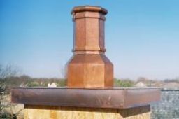 While traditional chimney pots were often made of clay, which would crack and decompose over time, our copper versions are designed to last for the life of the structure. Where used on an open-topped chimney, a full flashing is recommended to protect the home from moisture penetration. We often build these flashings for a custom-fit, to go along with orders for chimney pots and chimney caps.