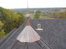 We build and install the best in copper ridge caps and finials. Years from now you will know you made a good investment when you select our quality products and service. Size measurements may vary slightly, as each unit is hand-crafted using time-tested old-world methods. The finial is an architectural accent that has enjoyed wide-spread appreciation in European culture for centuries. Waterways Sheet Metal offers a variety of finials designed to add a touch of elegance to your estate. They look great as individual accents, and even better when combined with other complementary copper products.