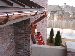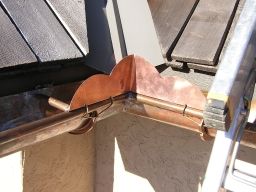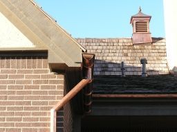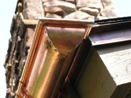 Our copper guttering systems include top-of-the-line mitred and soldered fittings. We custom-build each system, including downspouts and conductor heads, as needed. We install it all for a perfect fit, using the tried-and-true methods that metal-working professionals have used for centuries. Years from now you will know you made a good investment when you select our quality products and service. You can have the best of both worlds: the hand-crafted quality that is sought by discerning buyers, along with the latest techniques in weather-protection.